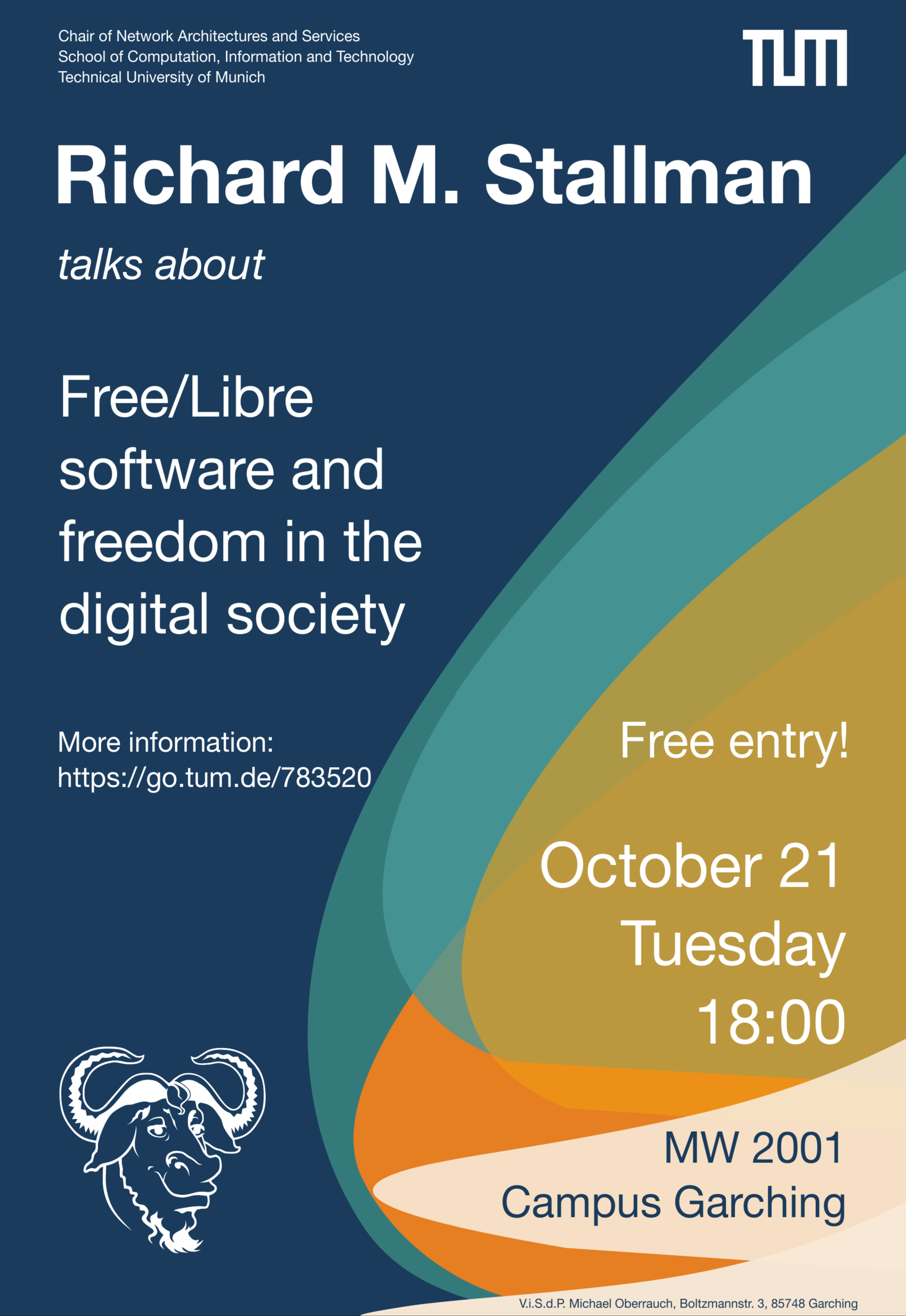 Richard Stallman at TUM on 21.10.2025 18:00, MW2001